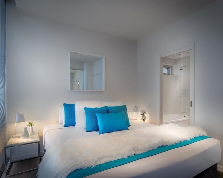 In addition to our Melbourne CBD apartment hotel providing heated indoor lap pool, we offer a diverse range of recreational options. Work out in our fully equipped modern gymnasium whilst enjoying inspiring skyline views through floor-to-ceiling windows. Delight in the luxury of our complimentary private cinema and club lounge or hone your serve on the outdoor tennis court. Plus, you can experience the adrenaline rush of the best rock indoor climbing facility in Australia. Additional guest perks include an onsite supermarket, casual meeting spaces, a spa and sauna, an outdoor terrace BBQ area and a car rental office.
