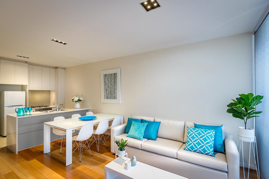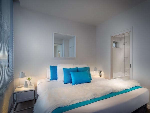 This is apartment living fitted out to the highest standard in modern contemporary style and sleeps up to two persons in either king, queen or twin beds. Enjoy the open plan lounge and dining area with the added flexibility to widen the space with a sliding glass bedroom door. The fully equipped modern kitchen includes a microwave/oven full size refrigerator and a dishwasher.