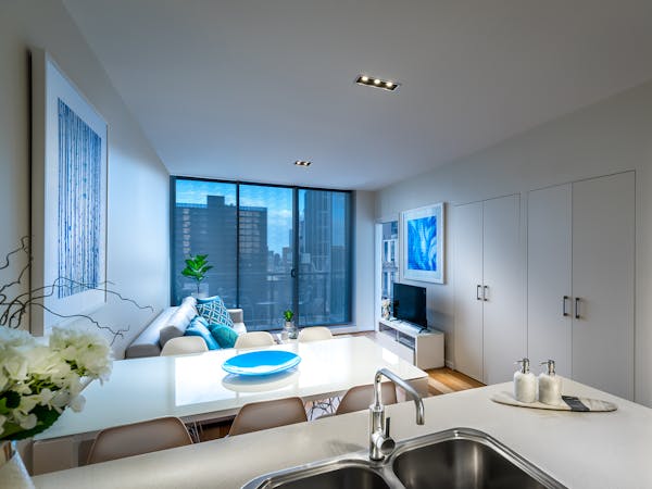 These executive serviced apartments offer two King or Twin bedrooms that sleep four to six people in addition to an ensuite bathroom. Living and dining areas are spacious and stylishly fitted out to the highest standard allowing you to taste city living Melbourne-style. The living room can also accommodate extra guests on a sofa bed. Plus, the fully equipped modern kitchen includes an oven, a microwave and a dishwasher.
