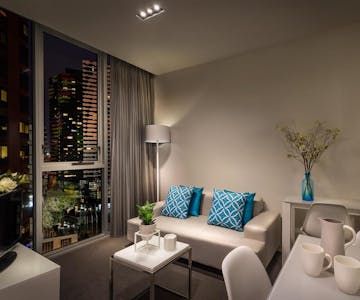 This is apartment living fitted out to the highest standard in modern contemporary style and sleeps up to two persons in either king, queen or twin beds. Enjoy the open plan lounge and dining area with the added flexibility to widen the space with a sliding glass bedroom door. The fully equipped modern kitchen includes a microwave/oven full size refrigerator and a dishwasher.